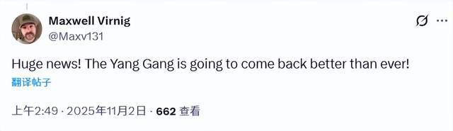 球迷Maxwell Virnig感慨:“天大的好消息!‘杨之队’一定会强势回归,变得比以往更棒!”